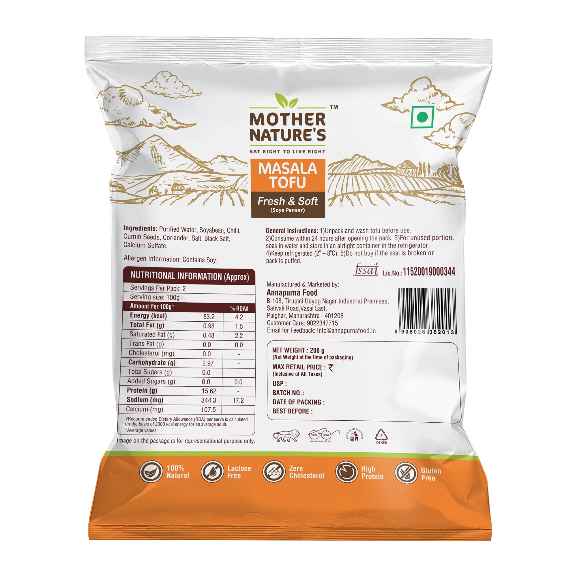 Mother Nature’s Masala Tofu is a ready-to-cook tofu infused with spices like chilli, cumin, and coriander, adding rich flavour to stir-fries, curries, wraps, and grilled dishes. It’s a plant-based source of protein and calcium.